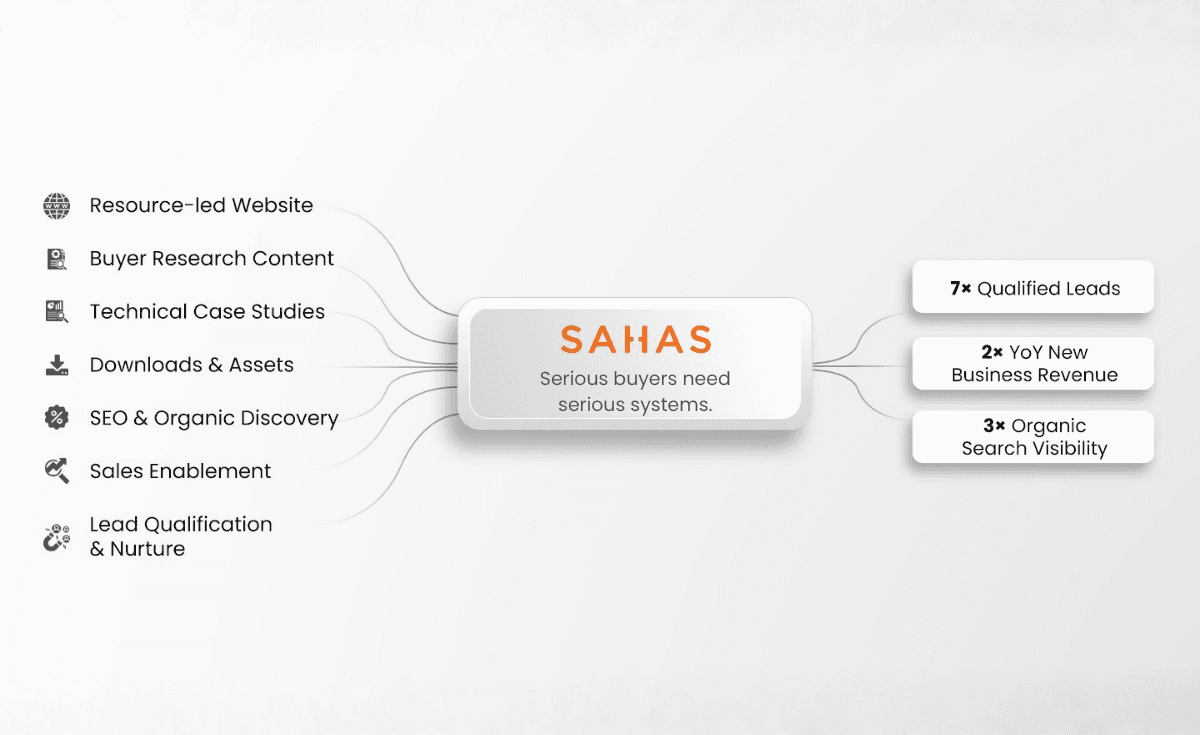 We helped SAHAS transition its marketing from a sporadic activity to a steady, system-driven flow of inbound demand.